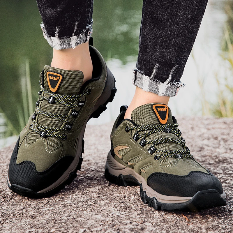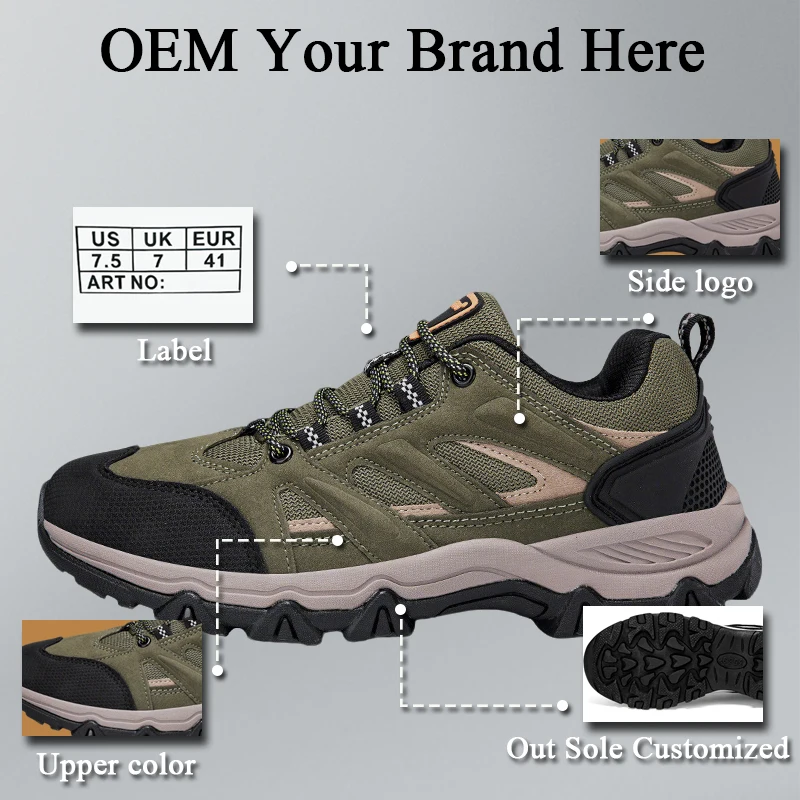 Factory Wholesale Durable Casual Hiking Shoes with Lace-up Splicing and Large-sized Anti-slip Outdoor Hiking Boots